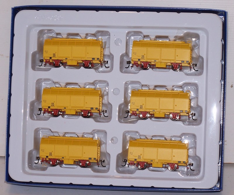 Scale HO | * Australian Vic Rail * 4 Wheel Wagons * GH ** Set of 6 ** Yellow * 3 Roof hatches * | -- @ $275 - With box - - - MO |