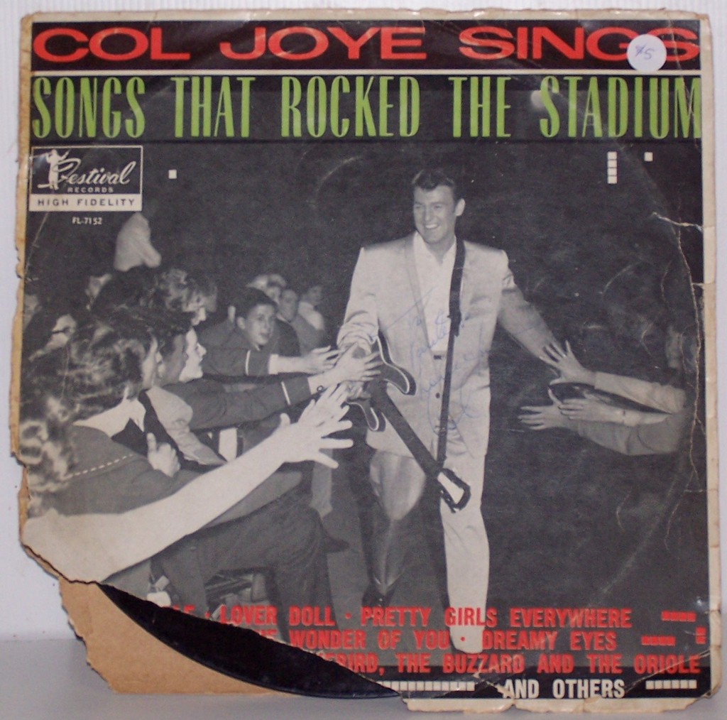 * Record * Col Joye sings songs that rocked the stadium * Col Joye and the boys * The record cover is signed by Col Joye |