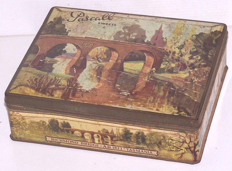 | Pascall | One Pound Net![]() | * Sweets tin * Picture of the Richmond Bridge A.D. 1823 * made in Tasmania * | @ $20 |