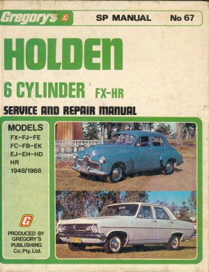 * HOLDEN 6 Cylinder FX - to - HR workshop manual * 1948 to 1968 * | @ $35.00 - Gregorys publishing Co. Pty. Ltd. |
