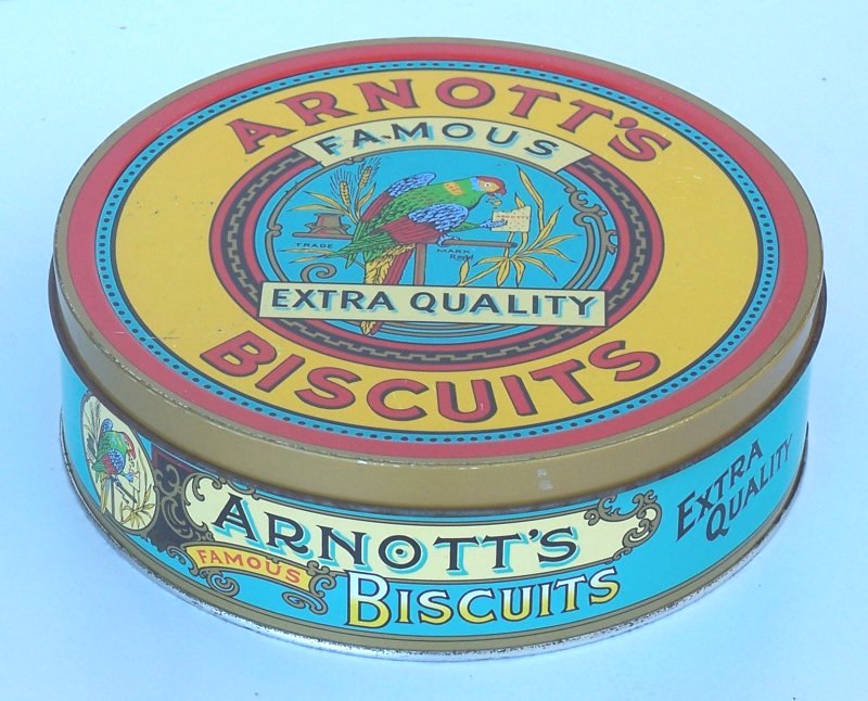| Arnott's | No 01111-1 ![]() | * Biscuit tin * Federation Biscuit Assortment * This is a repoduction of a 1920's design * Made in Australia for Arnott's Biscuits Limited. * | @ $20 |